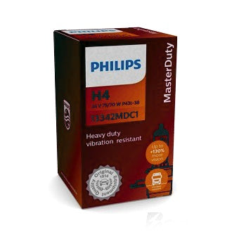 Philips MasterDuty 24V headlight bulbs are designed for maximum vibration resistance and excellent lifetime. They also provide up to 130% brighter light*. For drivers that are seeking toughness & brightness in a road legal bulb, choose Philips MasterDuty.