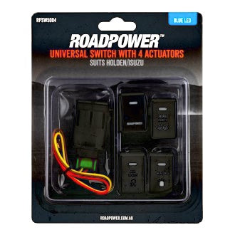 OEM Switch RANGEFactory Style Switches with Illuminated Symbols Multiple fascia designs available Included wiring harness Backlit illumination colour to match your vehicles interiorIt's now even easier to achieve a professional, clean factory finish with the Roadpower range of OEM style switches. Illuminating red, orange, blue or green to match your original dash lighting, these switches are designed to replace genuine switch blanks with popular switch functions including driving lights, light bars, work lights and more. With laser etched symbols and multiple fascia designs to choose from, Roadpower OEM style switches with supplied wiring harness allow aftermarket accessories to be easily fitted to a wide range of popular 4WD vehicles.